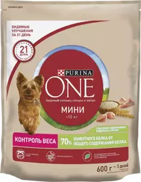 Сухой корм для собак мини пород Purina One индейка-рис, 600г