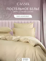 Комплект постельного белья евро Cassia Люкс страйп-сатин бежевый, 6предметов