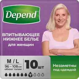 Нижнее белье для женщин впитывающее Depend M/l (96-108см), 10шт.