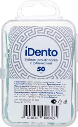Зубная нить-флоссер idento с зубочисткой, 50шт.