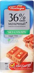 Шоколад молочный Победа вкуса Max Energy без сахара 36 % какао, 100г