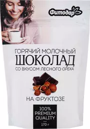 Горячий шоколад молочный Фитодар со вкусом лесного ореха, на фруктозе, 170г