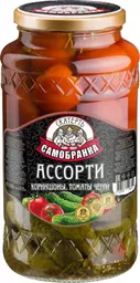 Ассорти маринованное из корнишонов и томатов черри Скатерть-самобранка, 1415мл