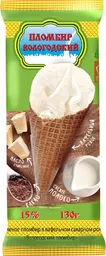 Мороженое Пломбир Вологодский в вафельном рожке 15%, 130г