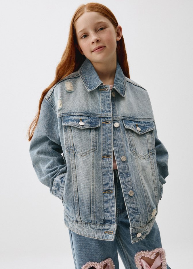 Джинсовая куртка с принтом на спине для девочек Sl5805051113_103