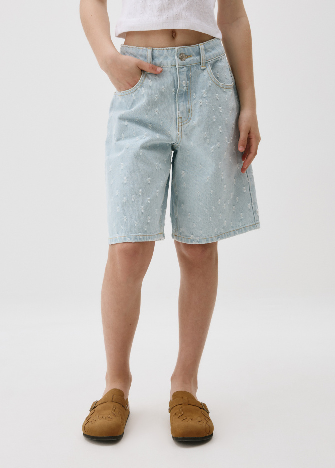 Джинсовые шорты-бермуды с потертостями для девочек Sl5805051473_101