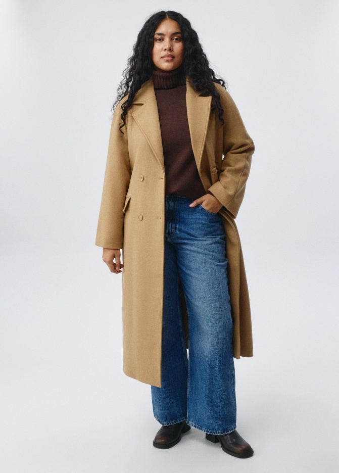 Двубортное пальто из драпа с добавлением шерсти Sl5809011202_137