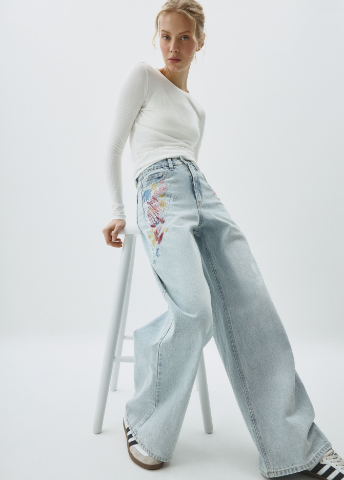 Джинсы Wide Leg с вышивкой 5801011458_102