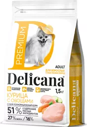 Delicana Premium Сухой корм для собак мелких пород, курица с овощами, 1.5 кг