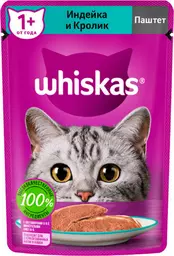 Whiskas Влажный корм (пауч) для кошек, паштет с индейкой и кроликом, 75 гр.