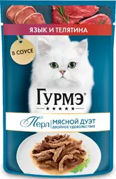 Gourmet Влажный корм (пауч) для взрослых кошек Перл Мясной Дуэт, с языком и телятиной в соусе, 75 гр.