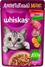 Whiskas Влажный корм (пауч) для кошек Аппетитный микс, говядина, язык и овощи в желе, 75 гр.