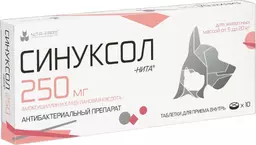 Nita-farm Синуксол-нита Антибактериальный препарат для кошек и собак весом от 5 до 20 кг, 250 мг, 10 таблеток (по рецепту)