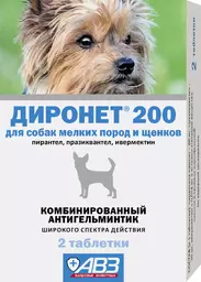Авз Диронет 200 Комплексный антигельминтный препарат для собак мелких пород и щенков, 2 таблетки