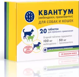 Vic Квантум Антигельминтный препарат для собак и кошек, со вкусом мяса, 20 таблеток