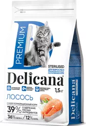 Delicana Premium Сухой корм для стерилизованных кошек, с лососем, 1.5 кг