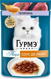 Gourmet Влажный корм (пауч) для взрослых кошек Перл Соус Де-люкс, с телятиной в соусе, 75 гр.