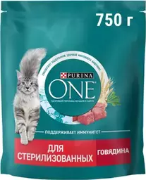 Сухой корм Purina One для стерилизованных кошек и кастрированных котов с высоким содержанием говядины и пшеницей 750г