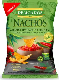 Чипсы Delicados Начос Пикантная сальса с кусочками перца чили, 150г