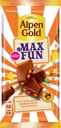 Шоколад Alpen Gold Max Fun Фруктовые кусочки-рис-шарики карамели, 140г
