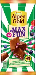 Шоколад Alpen Gold Max Fun Ягоды-карамель-шипучие шарики молочный, 140г