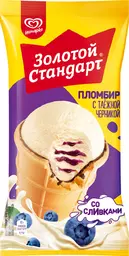 Мороженое пломбир Золотой стандарт с таежной черникой в вафельном стаканчике, 93г