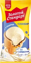 Мороженое пломбир Золотой стандарт со сливками в вафельном стаканчике, 95г