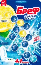 Туалетный блок Бреф Сила Актив Лимонная свежесть Океанский бриз, 4 х 50 г