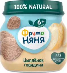 Пюре Фрутоняня цыпленок говядина с 6 мес., 80 г