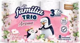 Туалетная бумага Familia Trio Цветочный бриз 3 слоя, 8 рулонов