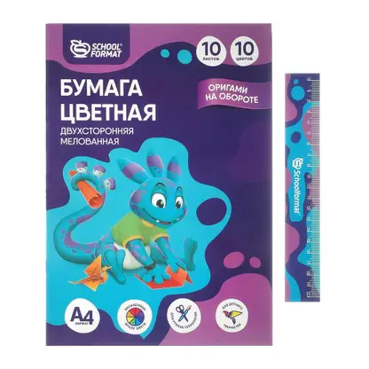Цветная бумага двухсторонняя мелованная на скрепке 10 цветов 10л