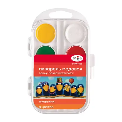 Акварель Гамма Мультики 8 цветов медовая без кисточки