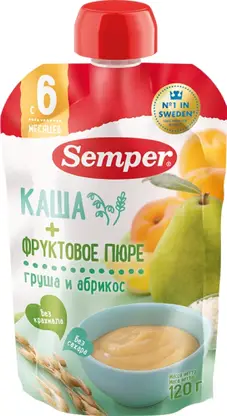 Пюре Semper Груша и Абрикос злаки с 6 мес 120г
