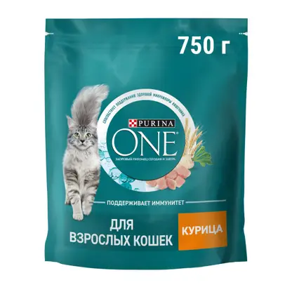 Сухой корм для взрослых кошек Purina One с курицей и цельными злаками 750г