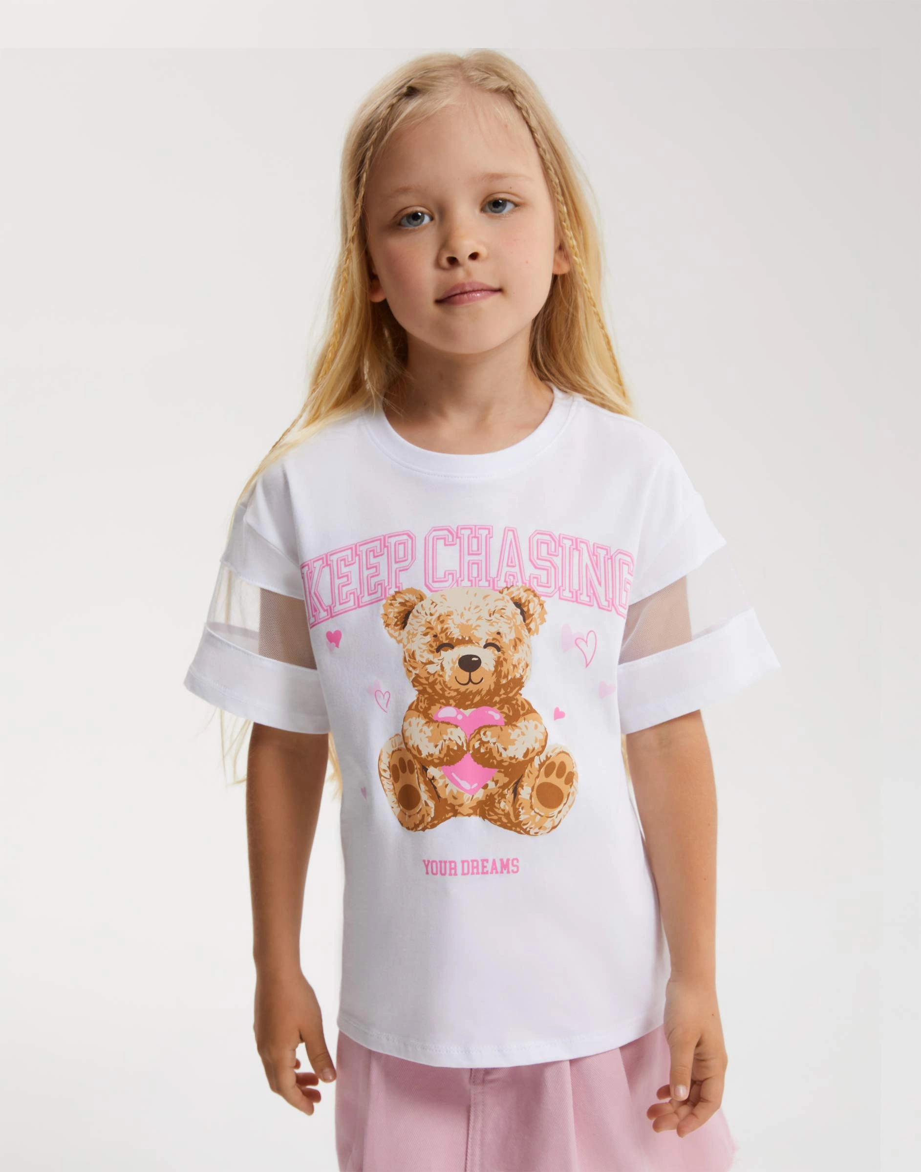 Белая футболка oversize с принтом для девочки Gkt026862-2