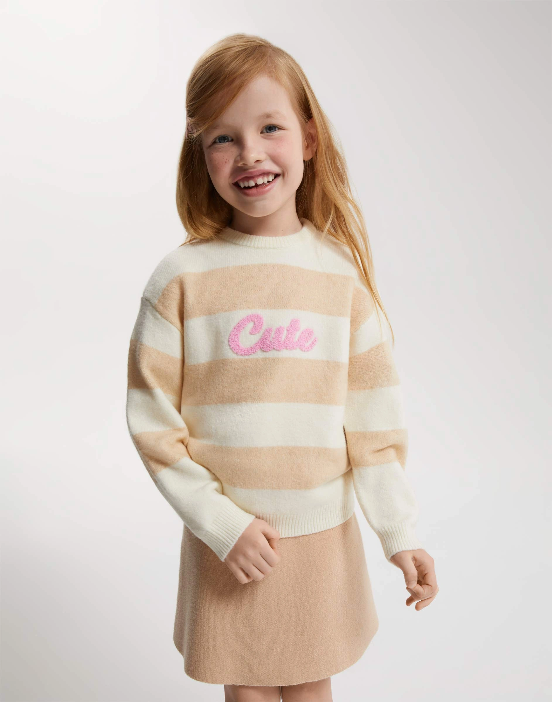Молочный джемпер в полоску с аппликацией для девочки Gsw007966-1