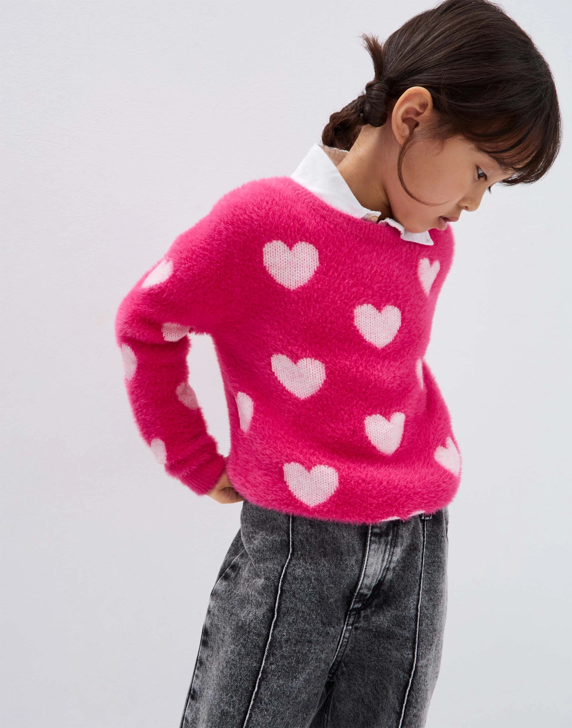 Розовый джемпер с сердечками для девочки Gsw007846-1