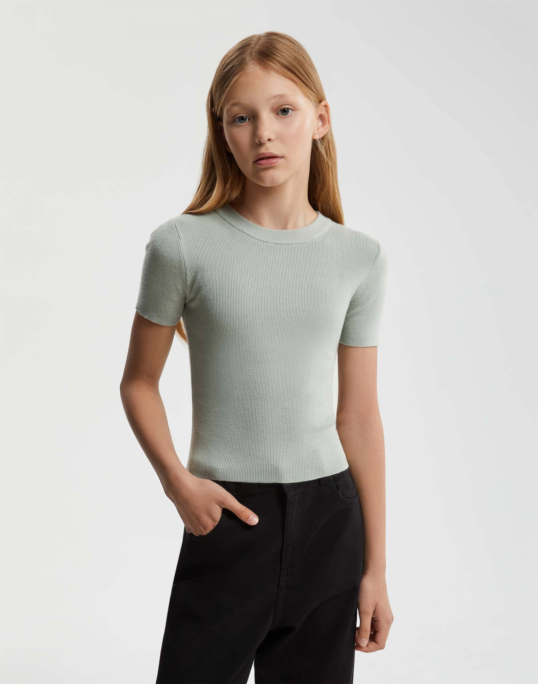 Серо-зелёный укороченный джемпер с коротким рукавом Gsw007971-3
