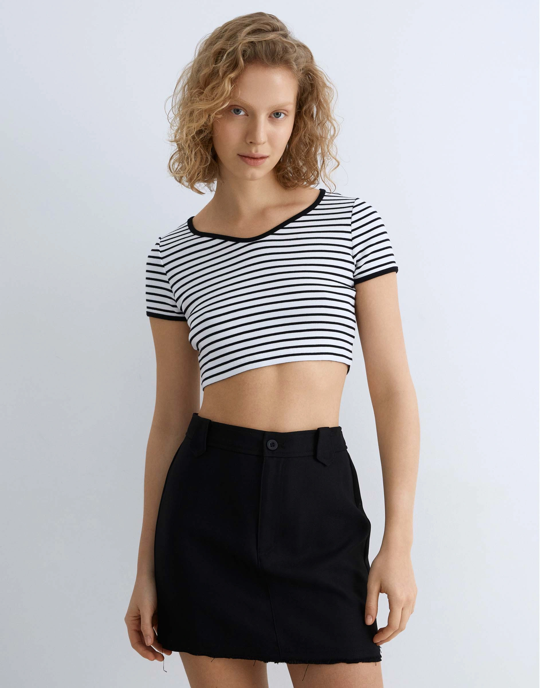 Полосатый кроп-топ с V-вырезом Gsw007782-2