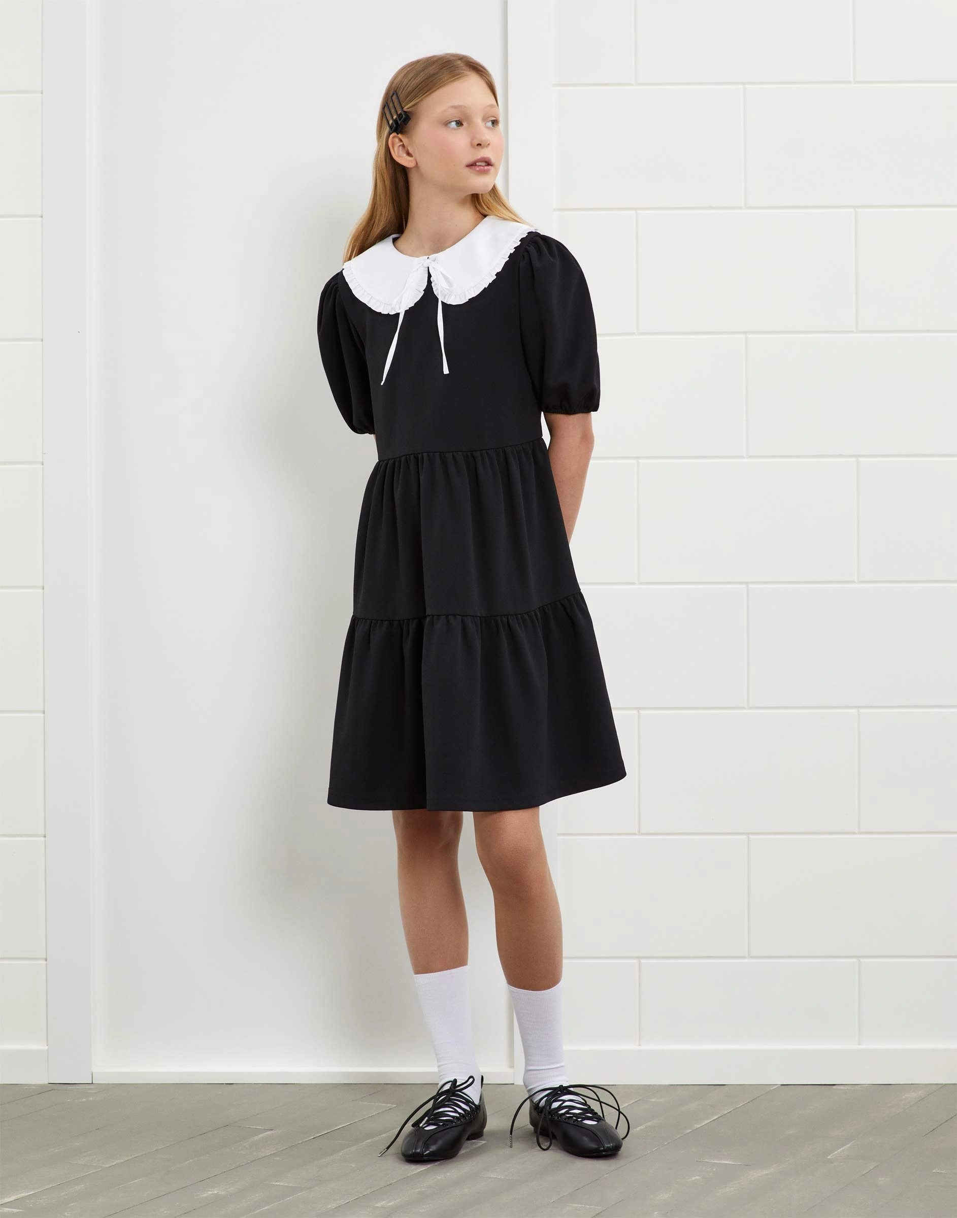 Чёрное школьное платье с ярусами и воротником Gsu001295-2