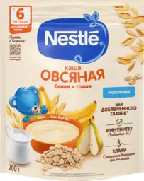 Каша овсяная Nestle молочная, с бананом и грушей, с 6 месяцев, 200г