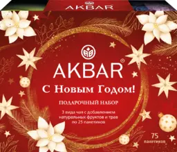 Набор чайный Akbar Подарочный с Новым Годом 3 вида, 75пак