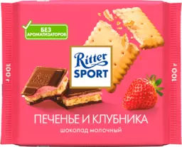 Шоколад молочный Ritter Sport печенье и клубника, 100г