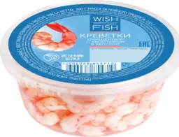 Креветки Королевские Wish Fish в рассоле, очищенные с хвостом, 200г