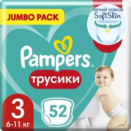 Подгузники-трусики Pampers Pants р.3 6-11кг, 52шт
