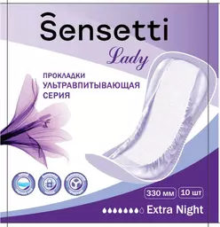 Прокладки Sensetti Extra Night впитывающие для женщин, 10шт