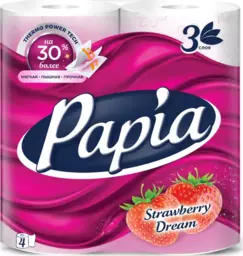 Туалетная бумага Papia Strawberry Dream 3 слоя, 4 рулона