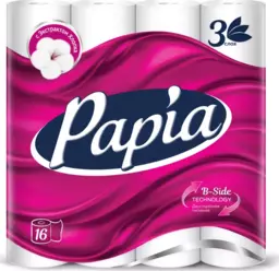 Туалетная бумага Papia белая 3 слоя, 16 рулонов