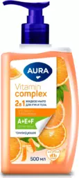 Мыло жидкое Aura Vitamin Complex 2в1 для рук и тела Апельсин и витамины, 500 мл