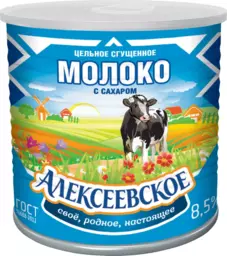 Молоко сгущенное Алексеевское цельное с сахаром 8.5% Бзмж, 360 г